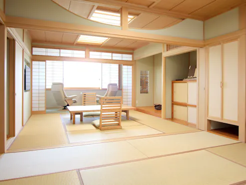 ห้องอาบน้ำในร่มที่มีดีไซน์หรูหราด้วยไม้ฮิบะจากอาโอโมริและหินโทวาดะ พร้อมบ่อแช่น้ำพุร้อนกลางแจ้งขนาดใหญ่ที่เหมือนสระว่ายน้ำส่วนตัวด้านริมทะเลสาบที่สามารถชมวิวได้ น้ำพุร้อนจากแหล่งกำเนิดเฉพาะ 2 ชนิดไหลเข้าสู่บ่ออย่างต่อเนื่องตลอด 24 ชั่วโมง ให้คุณเพลิดเพลินกับน้ำพุร้อนพร้อมสัมผัสธรรมชาติอันงดงามได้อย่างเต็มที่