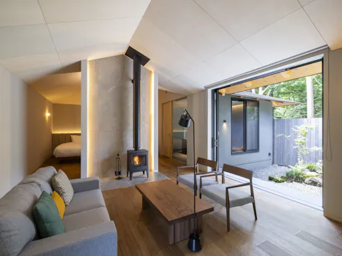 ที่พักลับที่กระจายตัวราวกับกลมกลืนไปกับผืนป่าแห่งฮาโกเนะ ให้คุณเพลิดเพลินกับกาลเวลาได้อย่างอิสระ ท่ามกลางความเงียบสงบยามเช้า กลิ่นหอมสดชื่นของน้ำค้างที่ลอยมากับกลิ่นพืชพรรณ ผิวไม้ของบ้านล็อกที่ส่องประกายอ่อนโยนเมื่อรับแสงแดด น้ำพุร้อนที่กลมกลืนกับธรรมชาติโดยรอบและเติมพลังชีวิตและความกระปรี้กระเปร่า... ทุกสิ่งที่นี่จะนำพากายใจของคุณไปสู่การล้าง ที่พักแยกส่วนตัวในฝัน ที่อยากกลับมาเยือนซ้ำแล้วซ้ำเล่า