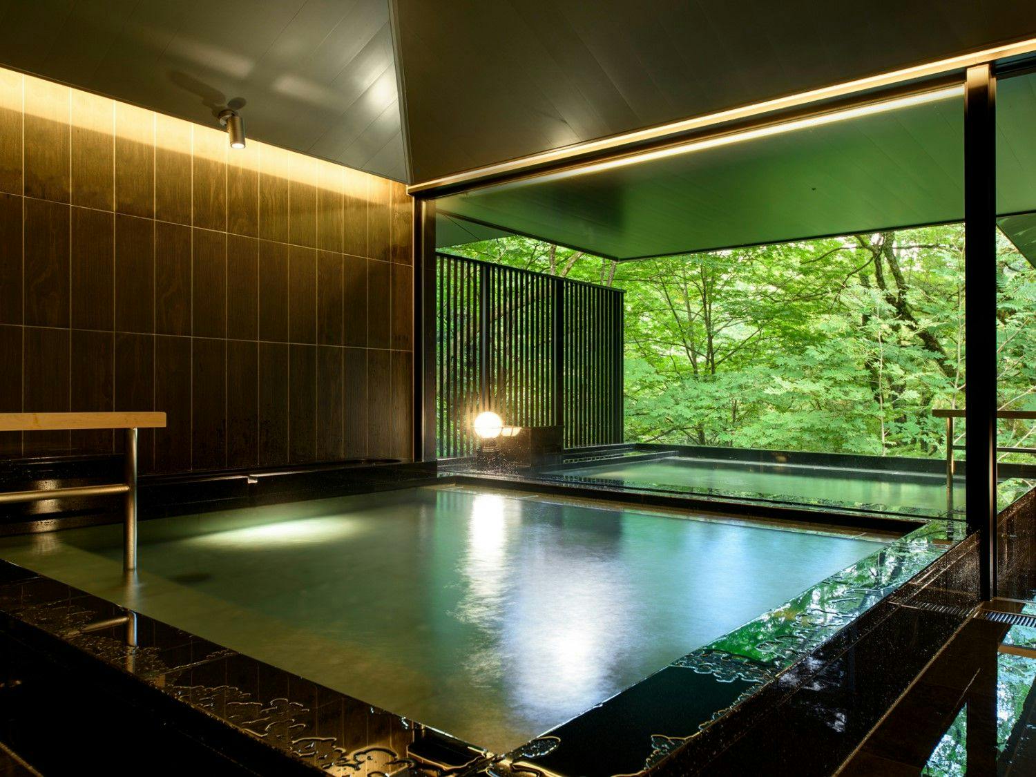 พื้นที่ที่สงบเงียบซึ่งเชื่อมโยงกับแสงธรรมชาติและให้ความรู้สึกถึงญี่ปุ่น พร้อมด้วยหินและพืชพรรณที่เป็นเอกลักษณ์ของฮาโกเนะ สร้างบรรยากาศลึกซึ้งเหมือนอยู่ท่ามกลางธรรมชาติในรีสอร์ทสุดหรู