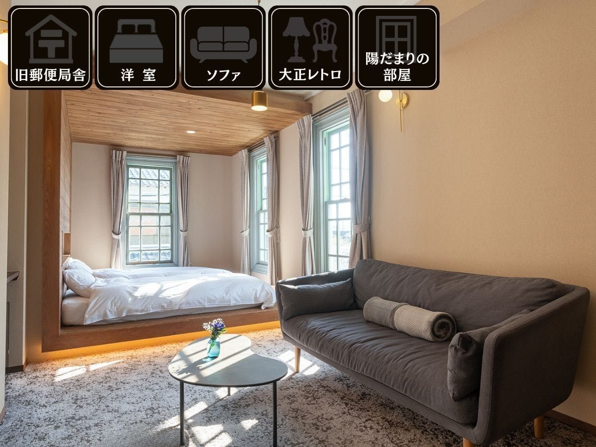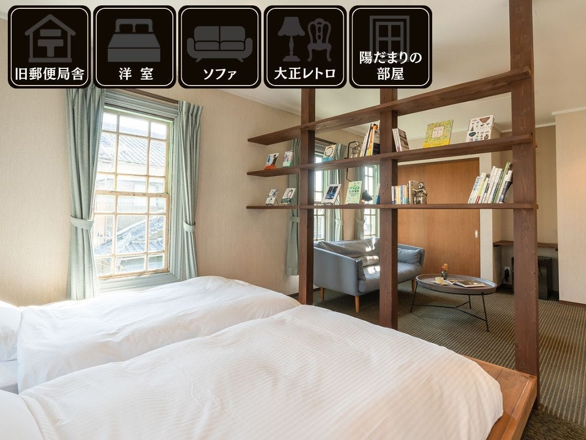kaaboy 10/1/2026I had stayed at other NIPPONIA accommodations before, so I thought it would be a safe choice and made the reservation. At check-in, after filling out some documents at the restaurant building, I was guided to my room. The room felt much more spacious than its 32 square meters. Originally a post office from the Taisho era, it was transformed into a beautiful space that didn’t resemble its past use at all. The first floor is a café that is exclusively for accommodation guests on weekdays but open to the public on weekends. The café also had various books, including ones about yokai (Japanese folklore creatures), which were available for purchase. Dinner was French cuisine served in the restaurant building, featuring local ingredients and drinks. Breakfast was also served in the restaurant building with an abundant variety of dishes such as simmered vegetables, salad, steamed dishes in bamboo steamers, grilled fish, and rolled omelets—all very delicious! It’s rare to find accommodations offering such an array of vegetables; I found this aspect particularly impressive. However, I felt disappointed that there wasn’t an inclusive plan available in this hotel’s reservation options since other NIPPONIA accommodations do offer such plans.