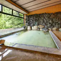 น้ำศักดิ์สิทธิ์จากน้ำพุศักดิ์สิทธิ์ฮาคุซังถูกนำมาต้มในอ่างอาบน้ำ พร้อมแสงไฟอ่อนโยนที่ล้อมรอบพื้นที่หลังอาบน้ำ สวนที่ประดับด้วยพืชพรรณตามฤดูกาลบางครั้งยังมีสัตว์ป่ามาเยี่ยมเยือน