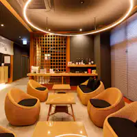 เรามีพื้นที่เล็กๆ ที่เป็นเอกลักษณ์ของที่พัก เช่น เคาน์เตอร์เช็คอินที่มีบริการเครื่องดื่มต้อนรับ จุดให้บริการสาเกญี่ปุ่นฟรีตามใจเจ้าของในบริเวณหลังอาบน้ำ และพื้นที่สำหรับทำชาสมุนไพรสูตรเฉพาะของคุณเอง