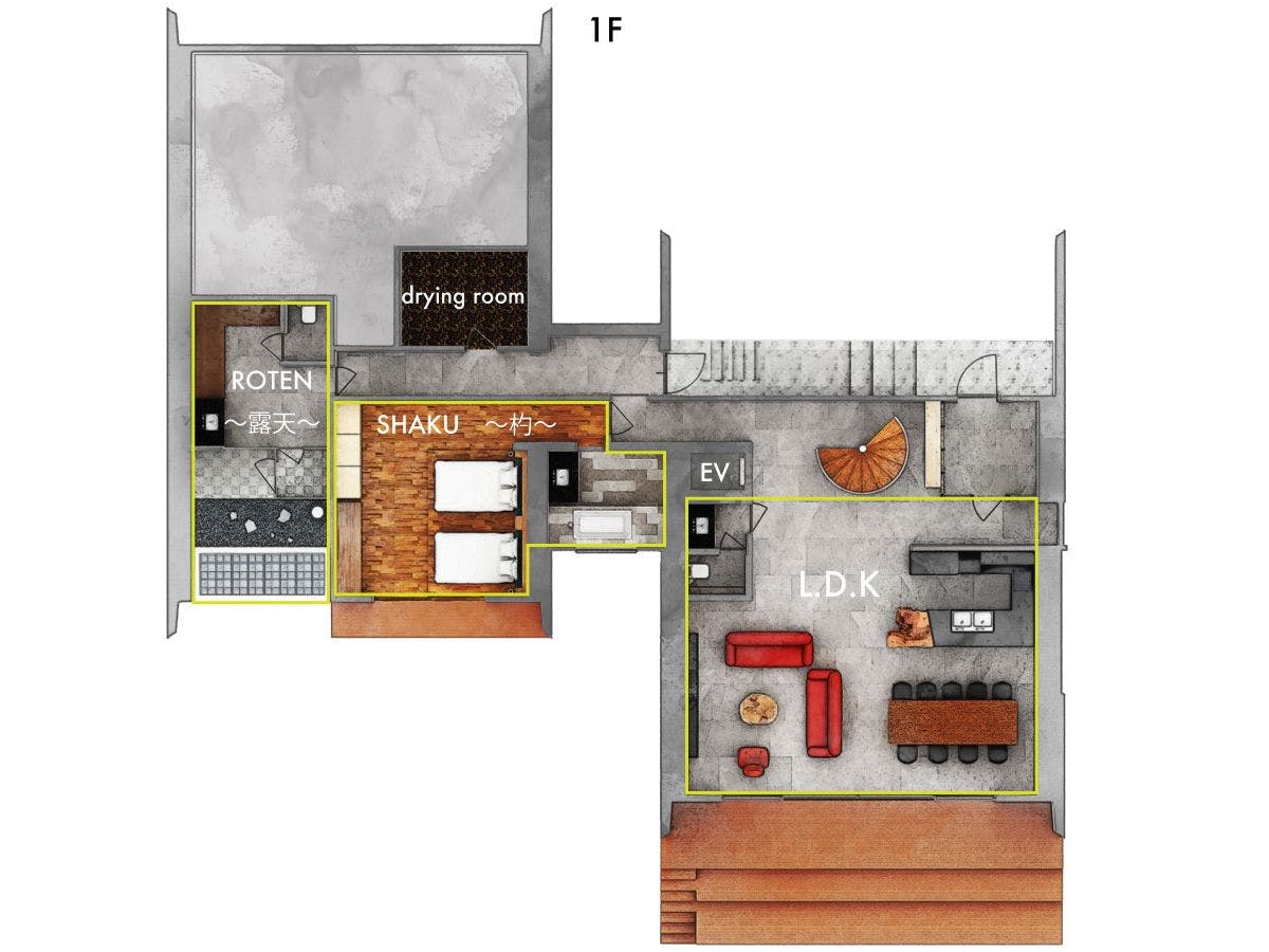 ห้องสวีท 3LDK ขนาด 400 ตารางเมตร พร้อมน้ำพุร้อนกลางแจ้งสำหรับ 1 กลุ่มต่อวัน และสวนขนาด 1000 ตารางเมตร