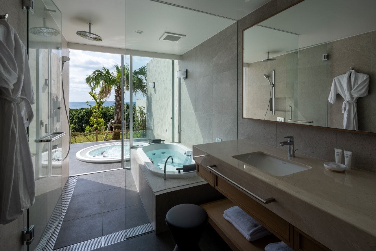 ゲスト 6/3/2026Stayed with my daughter’s family, including her husband and child, as well as my spouse—two families in total. The room was very clean, the pool was spacious with a jacuzzi, and it was beautifully lit up at night. The ocean view right in front of the room added to the full resort experience. The hotel provided shuttle service from the airport, and a rental car was prepared right in front of our villa room. The refrigerator was fully stocked with complimentary fruit juices and beers. There were plenty of towels available—separate ones for use inside the room and others for outdoor use—as well as beach sandals and bags provided for convenience. A free laundry facility made it easy to wash swimwear. The amenities were also high-quality with many options available. Breakfast on the first day featured Japanese cuisine, while Western-style breakfast was served on the second day; both meals were visually appealing and delicious. Since our grandchild is a picky eater, we didn’t have dinner at the accommodation but it looked equally appetizing from what we saw. Although prices are higher during summer season, all staff members were kind, making this stay an enjoyable family experience filled with wonderful memories!