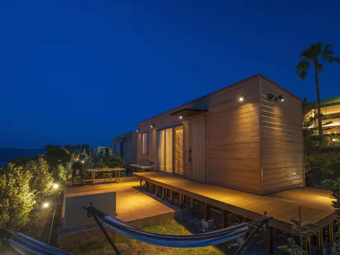 โรงแรมรีสอร์ทที่ปลายสุดด้านตะวันออกของคาบสมุทรมิอุระ ให้คุณผ่อนคลายไปกับวิวอันหรูหราของอ่าวโตเกียวและสายลมทะเลแสนสบาย สัมผัสประสบการณ์เหนือความคาดหมายในวันพักผ่อน อาคารโรงแรมโปร่งสว่าง เปิดโล่ง รับลมทะเลและเสียงคลื่นอย่างรื่นรมย์ ส่วนอาคารแกลมปิ้งให้คุณเพลิดเพลินกับการตั้งแคมป์ริมทะเลและบาร์บีคิวได้อย่างสะดวกสบาย ทั้งสองแบบต่างมีทิวทัศน์เฉพาะที่หาได้จากที่นี่เท่านั้นให้คุณดื่มด่ำ นอกจากนี้ยังมีน้ำพุร้อนธรรมชาติแบบกลางแจ้งพร้อมวิวอ่าวโตเกียว รวมถึงห้องน้ำพุร้อนธรรมชาติแบบส่วนตัว 5 แบบที่มีบรรยากาศแตกต่างกัน และห้องอบหินครบครัน มื้อเย็นเป็นฟูลคอร์สฝรั่งเศสที่ให้คุณลิ้มลองวัตถุดิบจากภูเขาและทะเลของจังหวัดคานางาวะ ส่วนมื้อเช้าเป็นบุฟเฟต์เมนูประมาณ 80 รายการ ที่ใช้วัตถุดิบจากคาบสมุทรมิอุระอย่างเต็มที่