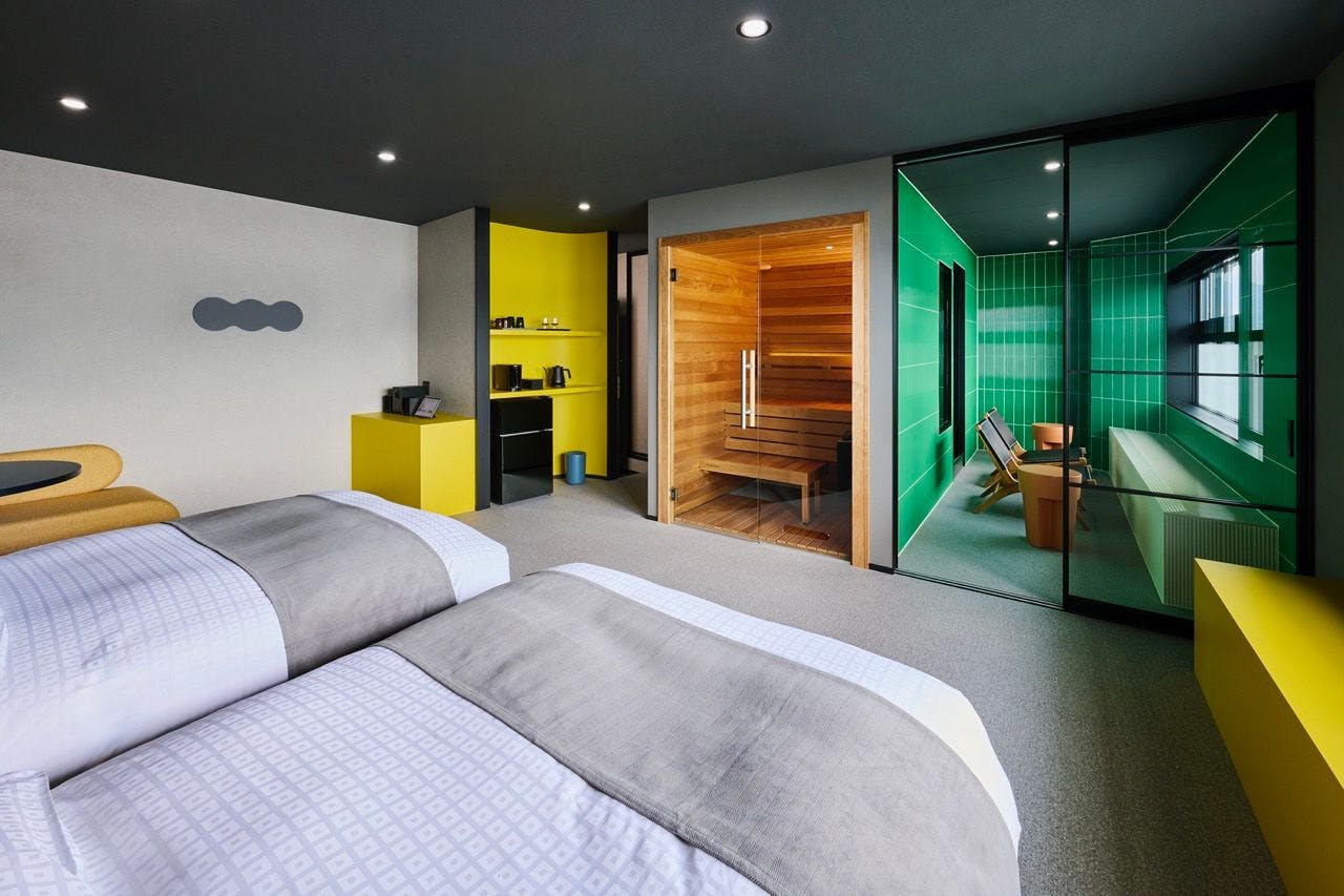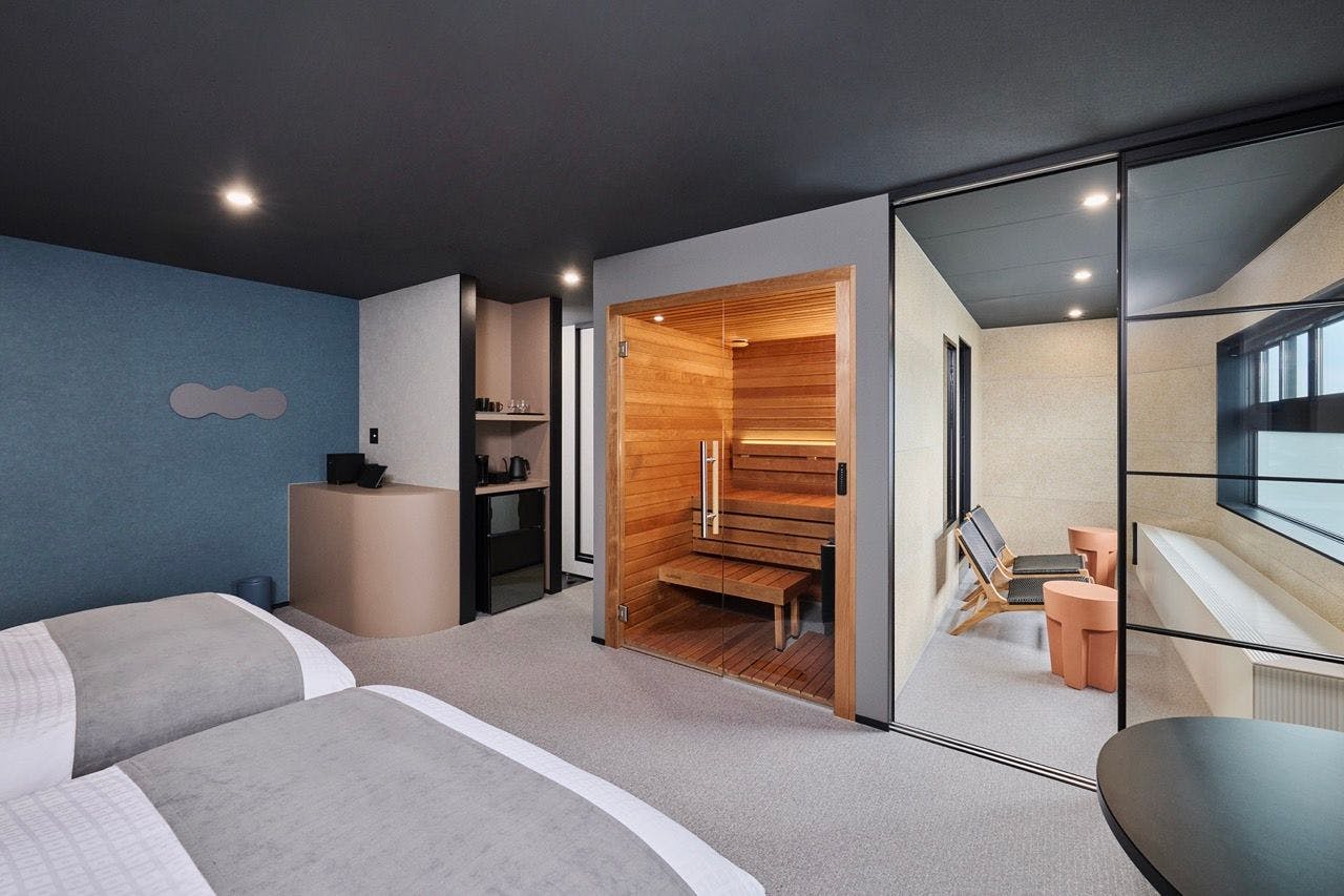 ห้องพักทุกห้องมีซาวน่าส่วนตัวครบครัน การออกแบบห้องพักและภายในเรียวกัง รวมถึงอาหาร ได้ผสมผสานองค์ประกอบที่เหมาะกับคนรุ่นใหม่ เพื่อให้คุณได้สัมผัสประสบการณ์เรียวกังในรูปแบบใหม่อย่างแท้จริง