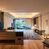รีสอร์ตหรูที่ให้ความรู้สึกราวกับอยู่ท่ามกลางธรรมชาติ ในบรรยากาศสงบที่สะท้อนความเป็นญี่ปุ่นและเชื่อมโยงกับแสงธรรมชาติ พร้อมด้วยโขดหินอันทรงพลังและพืชพรรณอันเป็นเอกลักษณ์ของฮาโกเนะที่ช่วยเพิ่มมิติความลุ่มลึกให้กับพื้นที่