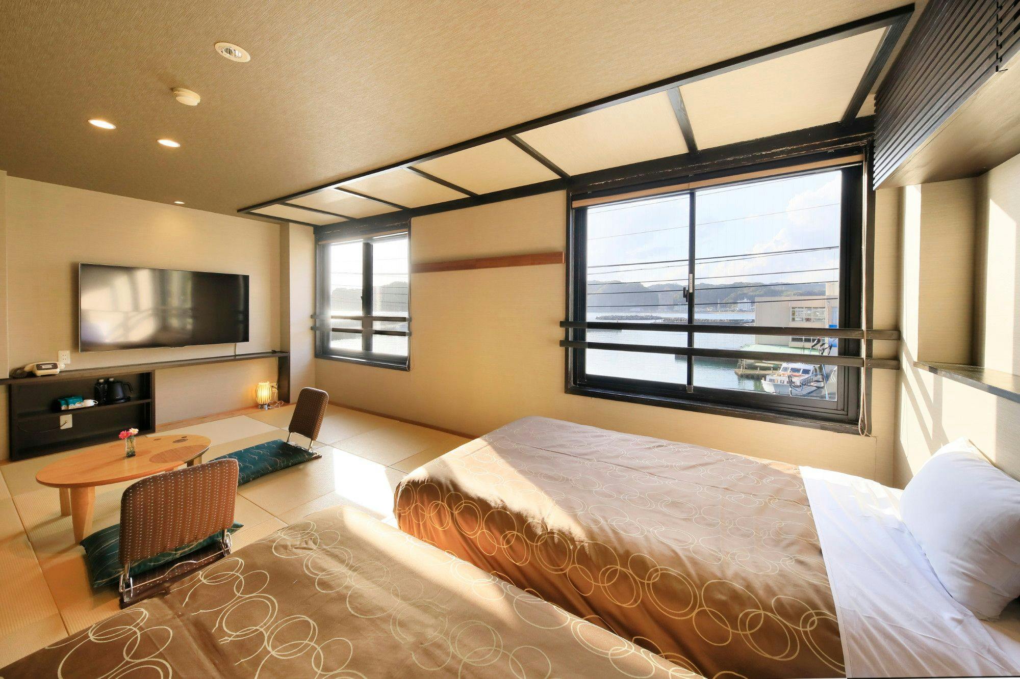 จากห้องพักที่หันหน้าไปทางทะเล คุณสามารถชมเรือท่องเที่ยวไทโนะอุระที่เข้าออกและเพลิดเพลินกับทัศนียภาพที่งดงามของ "อ่าวอุจิอุระ" ซึ่งได้รับการคัดเลือกให้เป็นหนึ่งใน 100 ทิวทัศน์ยามเย็นที่ดีที่สุด