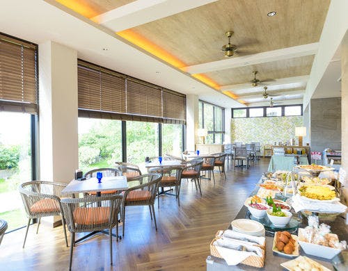 กรุณาลิ้มลองอาหารที่ปรุงด้วยวัตถุดิบตามฤดูกาลของโอกินาวาที่ร้านอาหารริมทะเลของโรงแรมพร้อมวิวทะเล
