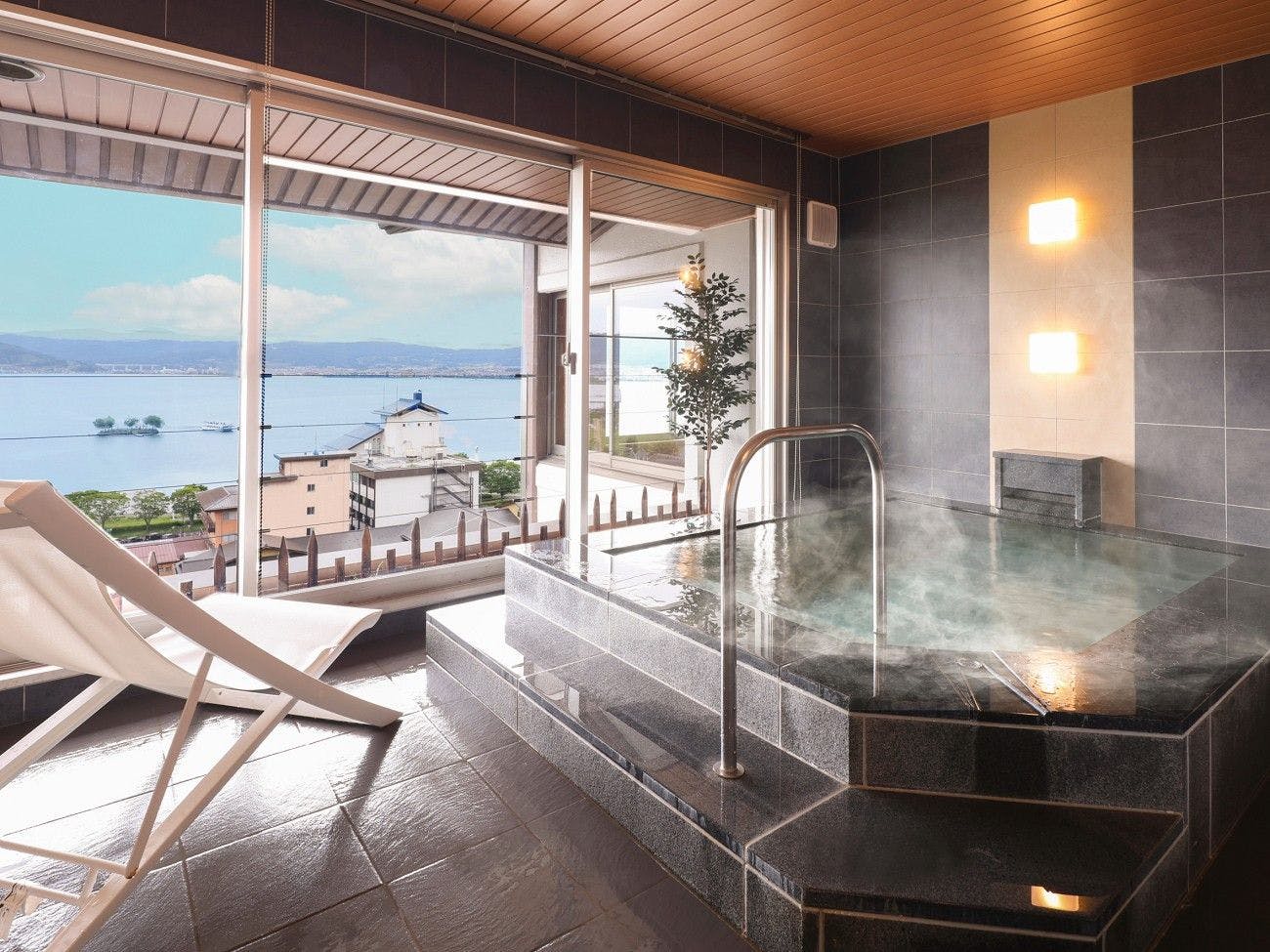 จังหวัดนากาโน่/น้ำพุร้อนคามิสุวะพื้นที่สไตล์ญี่ปุ่นอันสง่างาม ตั้งอยู่อย่างเงียบสงบพร้อมวิวทะเลสาบสุวะ