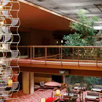 ล็อบบี้เลานจ์ที่มีเพดานสูงตกแต่งด้วยน้ำตกและปลาคาร์ฟในสระน้ำช่วยผ่อนคลายความเหนื่อยล้าจากการเดินทาง
