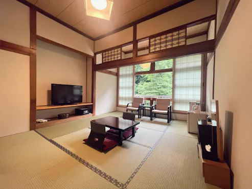 เรียวกังน้ำพุร้อนที่สร้างขึ้นจากไม้เคยากิทั้งหมด ซึ่งไม่สามารถสร้างขึ้นใหม่ได้ในยุคปัจจุบัน และเป็นที่รักของเคนจิ มิยาซาวะ และโทระฮิโกะ ทามิยะ น้ำพุร้อนที่มีประวัติศาสตร์ยาวนานกว่า 600 ปี และได้รับการคัดเลือกให้เป็น "100 น้ำพุร้อนที่ดีที่สุดในญี่ปุ่นใหม่" "100 น้ำพุร้อนที่ดีที่สุดในญี่ปุ่น" และ "มรดกน้ำพุร้อนญี่ปุ่น" น้ำพุร้อนคุณภาพสูงที่หาได้ยากแม้แต่ในแหล่งน้ำพุร้อนที่มีชื่อเสียง โดยมีแหล่งน้ำพุร้อนธรรมชาติถึง 5 แหล่ง และทุกห้องอาบน้ำทั้ง 4 แห่งในเรียวกังมีน้ำพุร้อนธรรมชาติ 100% ไหลผ่านอย่างต่อเนื่อง คุณสามารถเพลิดเพลินกับการแช่น้ำพุร้อนที่หรูหราได้อย่างเต็มที่ โดยเฉพาะอย่างยิ่ง อ่างอาบน้ำหินธรรมชาติที่มีน้ำพุร้อนธรรมชาติ 100% ซึ่งถือว่าลึกที่สุดในญี่ปุ่น เป็นอ่างอาบน้ำที่เราอยากแนะนำเป็นพิเศษ