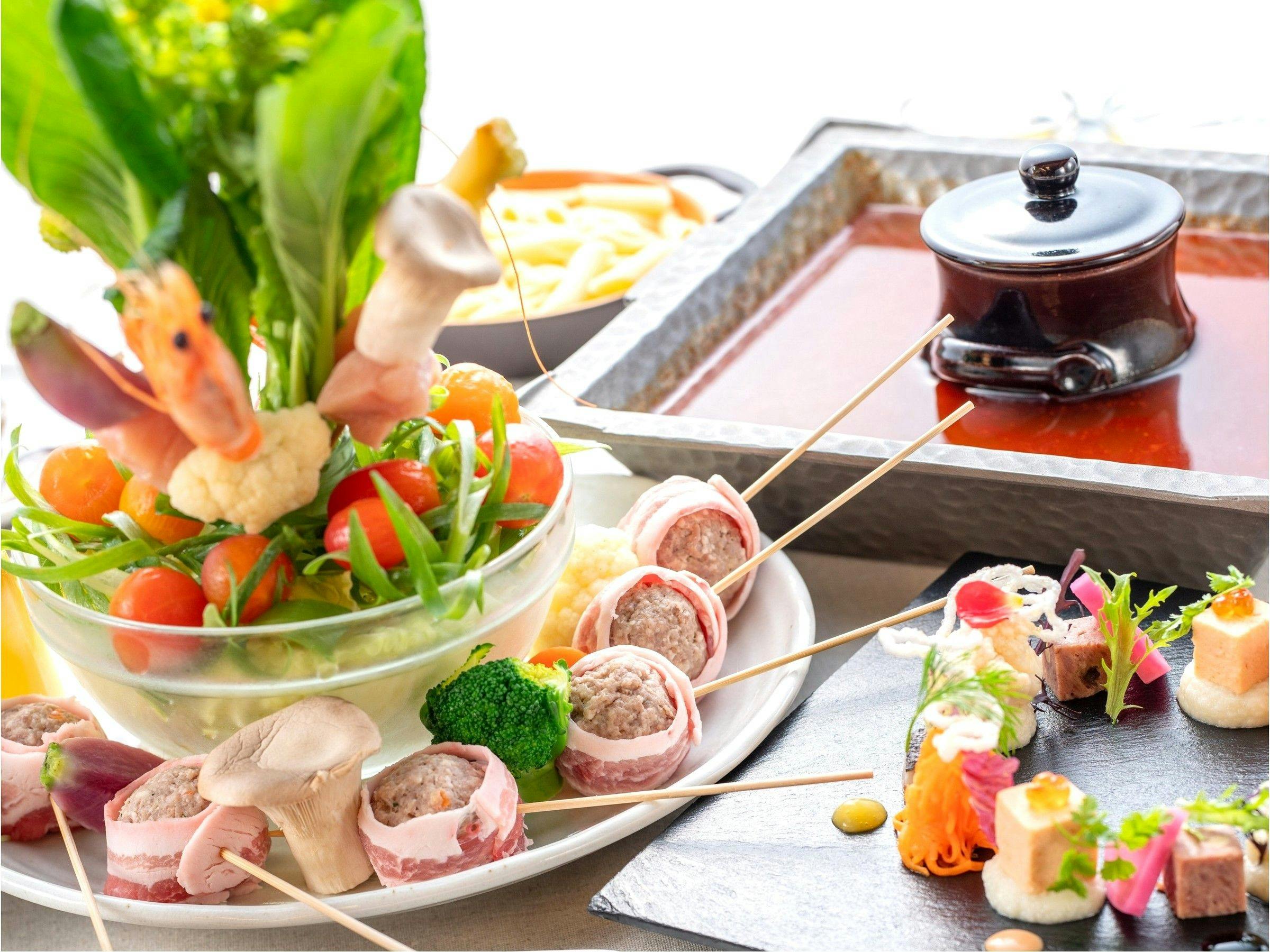 “WASHOKU” ที่เน้นวัตถุดิบที่ปลูกในดินอันอุดมสมบูรณ์ของที่ราบสูงนาสุ โรงแรมให้บริการผักสดจากนาสุและวัตถุดิบตามฤดูกาลที่คัดสรรโดยพนักงานโรงแรมจากฟาร์มพันธมิตร