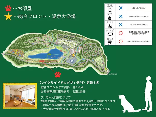 คอทเทจส่วนตัวที่ตั้งอยู่ในตำแหน่งพิเศษพร้อมวิวทะเลสาบกลางสิ่งอำนวยความสะดวก ได้รับการออกแบบเพื่อให้ผู้ที่ไม่เคยเดินทางกับสุนัขสามารถพักผ่อนได้อย่างมั่นใจ ด้วยรูปแบบห้องพักแบบคอทเทจ คุณสามารถเพลิดเพลินกับการเข้าพักได้อย่างสะดวกสบายโดยไม่ต้องกังวลเกี่ยวกับผู้อื่น ======================= 【เกี่ยวกับการเข้าพักของน้องหมา】 ●จำนวนสูงสุด: ไม่จำกัดขนาด สูงสุด 6 ตัว ●ค่าบริการสิ่งอำนวยความสะดวก: ฟรีสำหรับ 2 ตัวแรก, ตั้งแต่ตัวที่ 3 เป็นต้นไป คิดค่าบริการตัวละ 2,200 เยน/คืน ●ค่าบริการสิ่งอำนวยความสะดวกสำหรับสุนัขพันธุ์ใหญ่ (สูงกว่า 50 ซม.): ตัวละ 2,200 เยน/คืน ======================= 【สิ่งอำนวยความสะดวกในห้องพัก】 เตียงเดี่ยว 4 เตียง・ทีวีจอแอลซีดี・ห้องน้ำ・โต๊ะเครื่องแป้ง・สุขา・ตู้เย็น・เครื่องกำจัดกลิ่น・กาต้มน้ำไฟฟ้า・ไดร์เป่าผม・เครื่องปรับอากาศ 【ของใช้ในห้องพัก】 ชุดนอน ・ผ้าเช็ดตัว ・ผ้าขนหนูเช็ดมือ ・รองเท้าแตะใช้แล้วทิ้ง ・แชมพู ・ครีมนวดผม ・สบู่เหลวทำความสะอาดร่างกาย ・คลีนซิ่งโลชั่น ・โลชั่นบำรุงผิวหน้าและร่างกาย ・แปรงสีฟัน ・มีดโกนหนวด ・หวีและยางรัดผมสำหรับตกแต่งทรงผม ไฟฉาย และร่ม 【ของใช้สำหรับสัตว์เลี้ยง】 ผ้าขนหนูเช็ดตัวสัตว์เลี้ยง ผ้าขนหนูเช็ดเท้า ทิชชู่เปียก ไม้ม็อบ ลูกกลิ้งเก็บฝุ่น แผ่นรองฉี่ ถาดรองฉี่ สเปรย์ฆ่าเชื้อและดับกลิ่น ถุงเก็บขยะจากสัตว์เลี้ยง น้ำยาดับกลิ่นระหว่างเดินเล่น กรง (Crate) เครื่องกำจัดกลิ่น ชามอาหาร ขนม