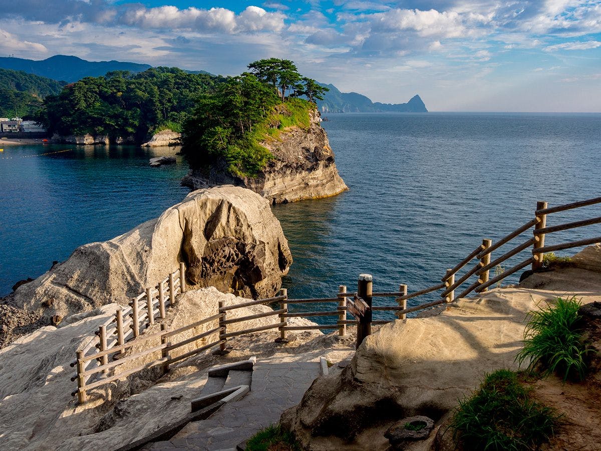 รถสาธารณะ / ลงที่สถานี Rendaiji สาย Izukyu-Shimoda แล้วต่อรถบัสตรงไป Dogashima ใช้เวลา 45 นาที