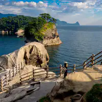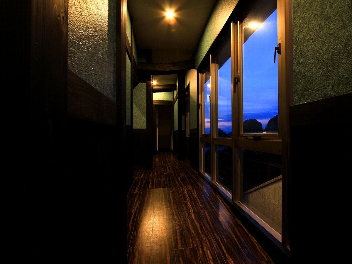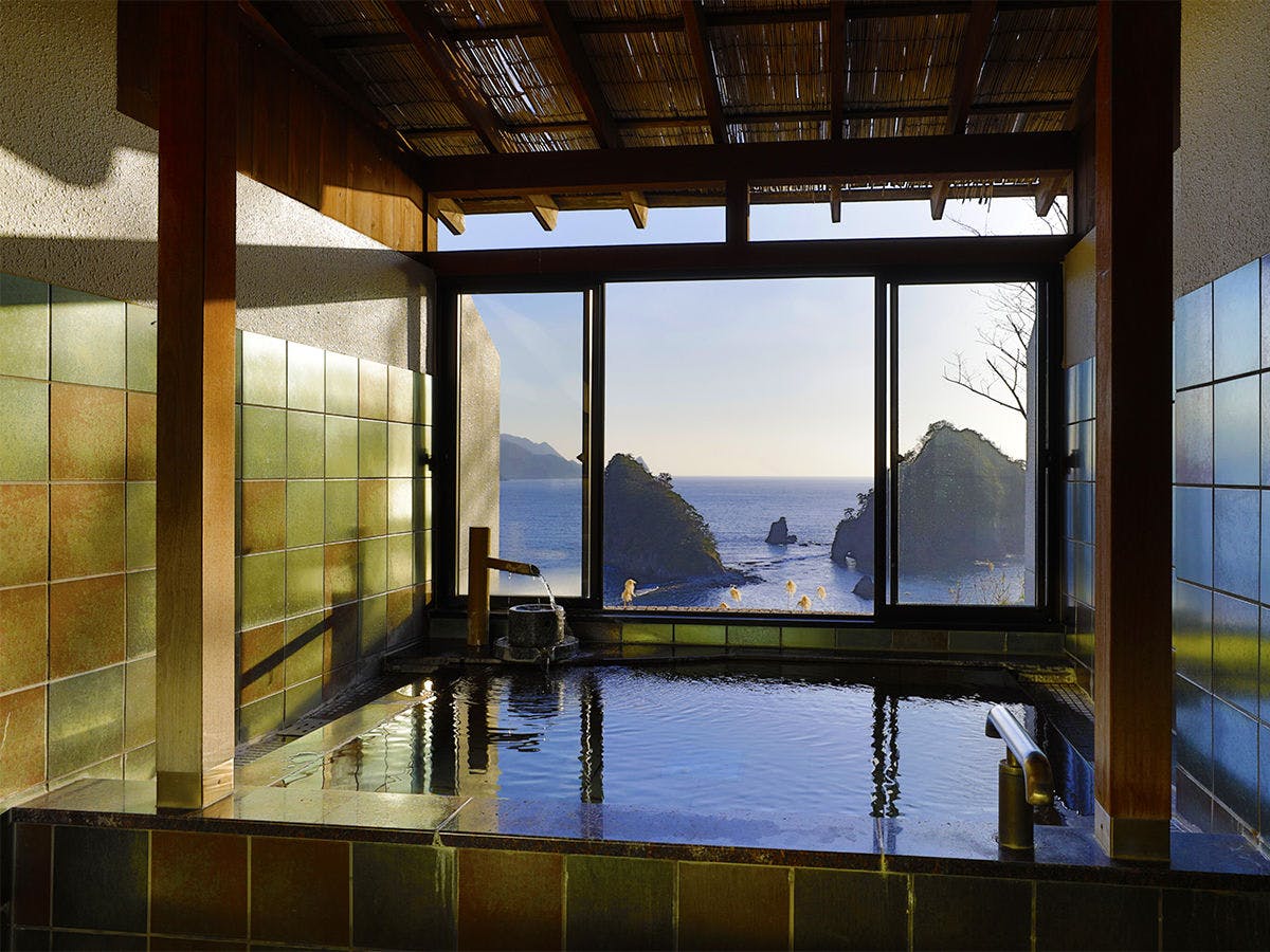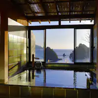 ที่พักที่มีห้องพักทุกห้องมองเห็นวิวทะเล ชมทัศนียภาพที่งดงามของ 'เกาะซันชิโระ' และมหาสมุทรแปซิฟิก บนพื้นที่กว้างขวาง 1,000 สึโบะ มีชายหาดส่วนตัวและทางเดินชมวิว เพลิดเพลินกับวิวพระอาทิตย์ตกจากล็อบบี้และห้องพัก พร้อมอาหารอร่อยที่ใช้วัตถุดิบในท้องถิ่น