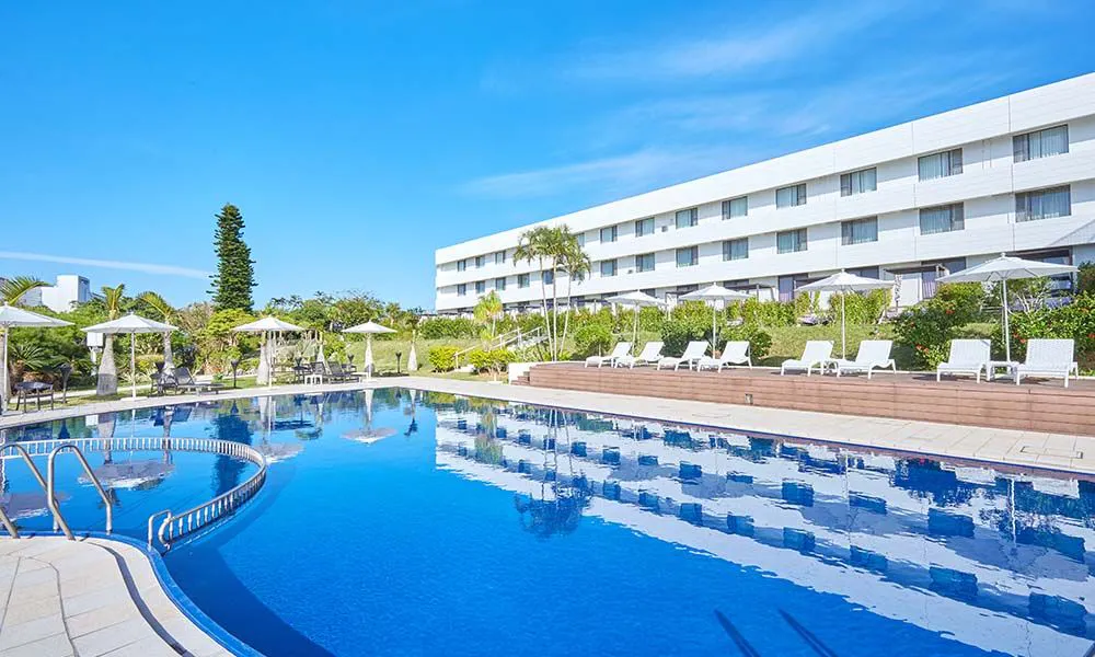 สระว่ายน้ำที่ส่องประกายระยิบระยับใต้ท้องฟ้าสีคราม จะช่วยเติมเต็มบรรยากาศรีสอร์ทให้มากยิ่งขึ้น