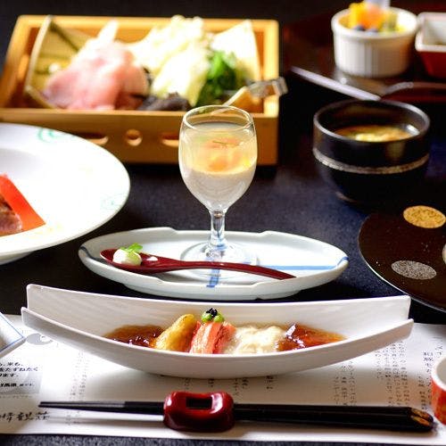 อาหารของเรามีการใช้น้ำพุ "ซุยเทนกู" ที่ไหลออกมาจากภูเขาด้านหลัง นอกจากนี้เรายังมุ่งมั่นใช้วัตถุดิบจากจังหวัดกุนมะและให้ความปลอดภัยด้านอาหารในฐานะ "ร้านส่งเสริมการบริโภคในท้องถิ่น"