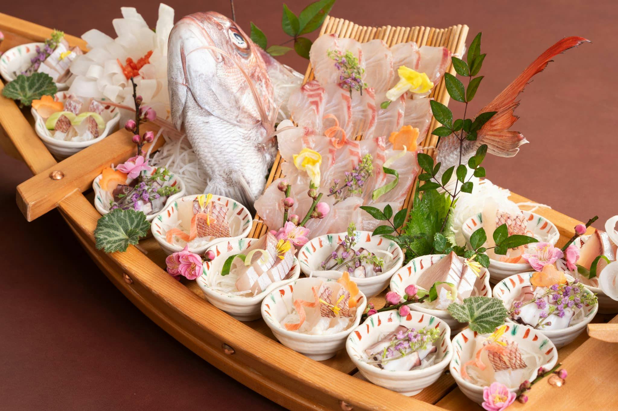 เพลิดเพลินกับบุฟเฟ่ต์สไตล์ญี่ปุ่นและตะวันตกที่คัดสรรวัตถุดิบจากคากาวะและเกาะโชโดชิมะ เช่น ปลาสดใหม่ในท้องถิ่น สเต็กเนื้อโอลีฟ ซอสโชยุ สึคุดานิ และโซเม็ง