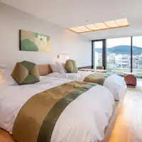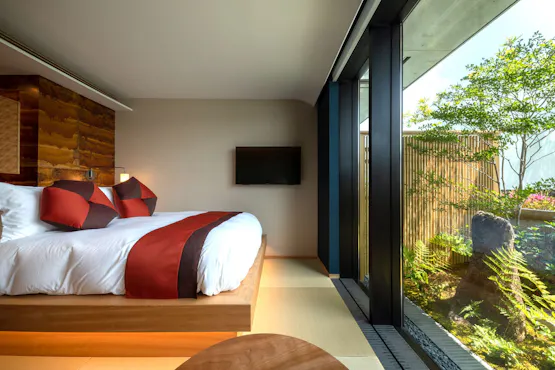 ห้องพักที่หรูหรามีเฟอร์นิเจอร์ทำมือ เตียงหรูหรา แสงไฟจากกระดาษญี่ปุ่น ระบบปรับอากาศที่ทันสมัย พื้นที่มีระบบทำความร้อน และห้องน้ำที่ออกแบบอย่างพิถีพิถัน ทุกห้องพักมีเสื่อทาทามิญี่ปุ่นเพื่อความผ่อนคลาย จากทุกห้องพัก คุณสามารถชมวิวแม่น้ำคาโมะ เมือง หรือสวนเล็ก ๆ ผ่านหน้าต่างหรือระเบียงที่ออกแบบมาเพื่อให้ประสบการณ์ที่ละเอียดอ่อน ห้องพักที่มีระเบียงหันหน้าไปทางแม่น้ำคาโมะสามารถเพลิดเพลินกับวิวภูเขาฮิกาชิยามะตลอดทั้งปี