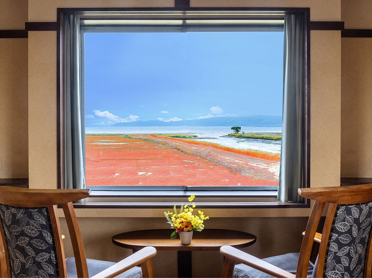 ห้องพักฝั่งทะเลสาบเป็นพื้นที่ที่สามารถชมวิวทะเลสาบโนโตริได้อย่างใกล้ชิด จากหน้าต่างคุณสามารถเพลิดเพลินกับความงดงามของธรรมชาติในแต่ละฤดูกาล ไม่ว่าจะเป็นพืชซันโกะสีแดงสด น้ำแข็งลอย ทิวทัศน์หิมะ หรือใบไม้เปลี่ยนสีที่สดใส