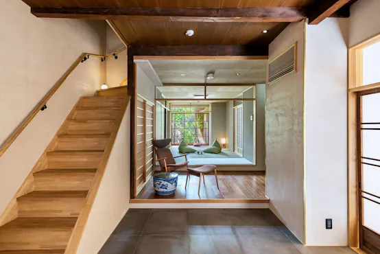 ที่พักแบบบ้านเมืองเก่าที่ได้รับการรีโนเวทจากร้านขายตุ๊กตาเซรามิกที่มีประวัติยาวนานตั้งแต่สมัยไทโช ตั้งอยู่บนทางเดิน "ชะวังซากะ" ใกล้กับ "วัดคิโยมิซุ" พื้นที่ภายในที่พักได้รับการตกแต่งอย่างหรูหราด้วยการฉาบปูนและการใช้กระดาษญี่ปุ่นที่เพิ่มความงดงาม คุณสามารถสัมผัสบรรยากาศที่สะท้อนถึงประวัติศาสตร์กว่า 100 ปีได้อย่างเต็มที่ ชั้นล่างประกอบด้วยห้องพักแบบญี่ปุ่นที่หันหน้าไปยังสวนเล็กๆ ที่มีเสน่ห์ ห้องนั่งเล่น และห้องครัวที่สามารถทำอาหารเองได้ เมื่อเปิดประตูโชจิทั้งหมด จะได้พื้นที่กว้างขวางที่สามารถใช้สำหรับการรับประทานอาหารหรือการพักผ่อนร่วมกันได้ตามต้องการ ห้องอาบน้ำมีหน้าต่างที่มองเห็นสวนเล็กๆ ได้เต็มตา ให้ความรู้สึกเหมือนออนเซ็นกลางแจ้ง นอกจากนี้ยังมีห้องอาบน้ำฝักบัว และชั้นสองมีห้องนอนแบบตะวันตก 1 ห้อง และห้องพักแบบญี่ปุ่น 2 ห้อง ทำให้สามารถรองรับการเข้าพักของกลุ่มใหญ่ได้อย่างสะดวกสบาย เพลิดเพลินกับประสบการณ์การเข้าพักที่เหนือระดับในบรรยากาศที่เต็มไปด้วยเสน่ห์ของเกียวโต