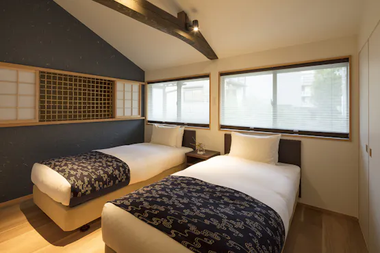 บ้านทั้งสี่หลังที่อยู่ติดกันแต่ยังคงความเป็นส่วนตัวสูง แต่ละหลังมีธีมที่แตกต่างกัน: ดอกไม้, นก, ลม, และพระจันทร์ พร้อมด้วยห้องครัวและห้องน้ำที่ทันสมัย ใช้การตกแต่งภายในแบบ 'เคียวคาราคามิ' ของเกียวโตและประตูโบราณ สร้างพื้นที่ที่ผสมผสานความสะดวกสบายและความอบอุ่น