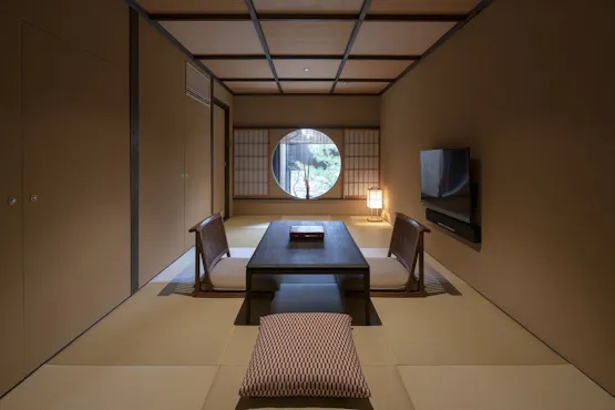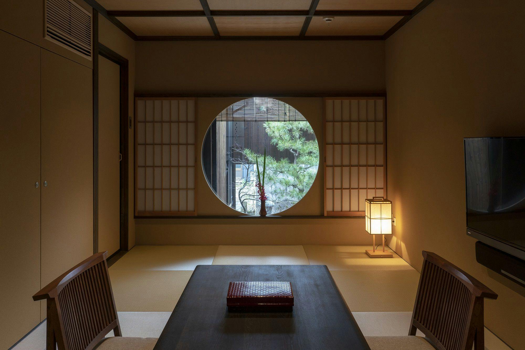 ห้องพักสไตล์ญี่ปุ่นและตะวันตกที่ผสมผสานความงามและความสะดวกสบาย รูปทรงกลมที่พบเห็นได้ทั่วสร้างบรรยากาศที่อ่อนโยนช่วยปลอบประโลมจิตใจที่เหนื่อยล้า