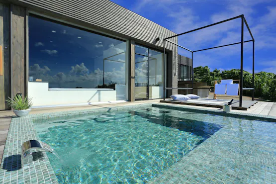 พักผ่อนในรีสอร์ทส่วนตัวที่มีวิลล่าสำหรับ 3 กลุ่มต่อวัน พร้อมอ่างจากุซซี่ในทุกห้องและวิวทะเลสีเขียวมรกตที่งดงาม