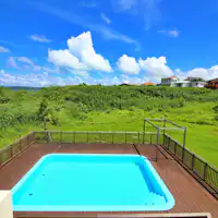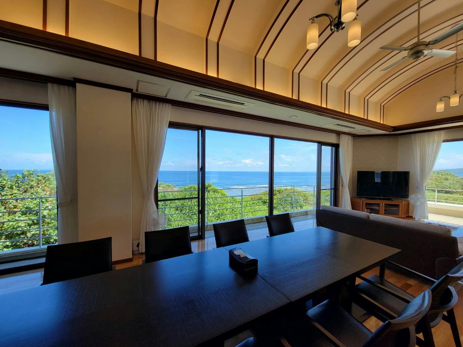 วิลล่าที่มีวิวทะเลที่งดงามเช่นนี้มีเพียงไม่กี่แห่งในจังหวัดโอกินาว่า เวลาที่เงียบสงบห่างไกลจากความวุ่นวาย หนึ่งในจุดเด่นของวิลล่าแห่งนี้คือชั้นสองที่มีกระจกใส ซึ่งสามารถมองเห็นทะเลสีเขียวมรกตได้อย่างเต็มตา เพลิดเพลินกับการพักผ่อนตามใจชอบในขณะที่ชมทะเลยามพระอาทิตย์ตกดิน ในช่วงกลางวันสามารถผ่อนคลายที่สระว่ายน้ำกลางแจ้งขนาดใหญ่ และในช่วงเย็นฟังเสียงคลื่นอย่างช้าๆ ใช้เวลาที่ลืมความวุ่นวายในชีวิตประจำวัน ภายในวิลล่ามีพื้นที่ 215 ตารางเมตร เป็นบ้านเช่าทั้งหลัง มี 3 ห้องนอน และ 2 ห้องน้ำ ซึ่งสามารถรองรับได้ถึง 3 ครอบครัวอย่างสะดวกสบาย