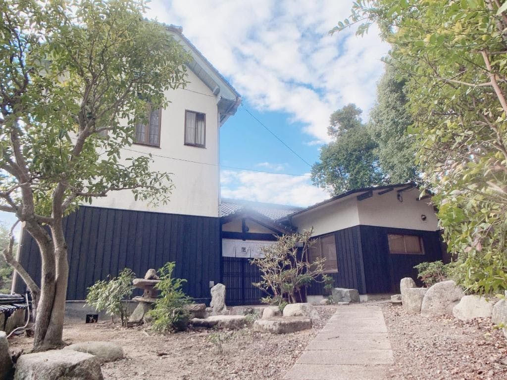 ที่พักแบบบ้านเช่าทั้งหลังพร้อมอ่างอาบน้ำกึ่งกลางแจ้งที่สามารถพักกับสัตว์เลี้ยงได้ ตั้งอยู่ในมิยาจิมะที่มีประวัติศาสตร์