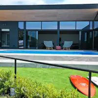 สระว่ายน้ำมาตรฐานความลึก 1.1 ม. ขนาดกว้างพอให้ทั้งเด็กและผู้ใหญ่สนุกได้อย่างเต็มที่ ช่วงเดือนเมษายน–ตุลาคมมีระบบฮีตปั๊มทำงาน จึงสามารถว่ายน้ำได้แม้ไม่ใช่ฤดูร้อนในวันที่อากาศอบอุ่น เข้ากันได้อย่างยอดเยี่ยมกับซาวน่ากลางแจ้งด้วยเช่นกัน