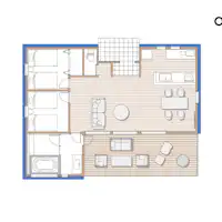ภายในห้องพักมีห้องครัวพร้อมอุปกรณ์ครบครัน พร้อมเครื่องใช้ไฟฟ้าหลากหลาย เช่น หม้ออัดแรงดันไฟฟ้า ReDe เตาอบไมโครเวฟ BALMUDA เครื่องปิ้งขนมปัง และกาต้มน้ำ ขอแนะนำให้ลองทำอาหารด้วยวัตถุดิบสดใหม่ที่ซื้อจากสถานีริมทางใกล้เคียง เครื่องดื่มในตู้เย็นรวมอยู่ในค่าที่พักแล้ว สามารถรับประทานได้ตามสบาย