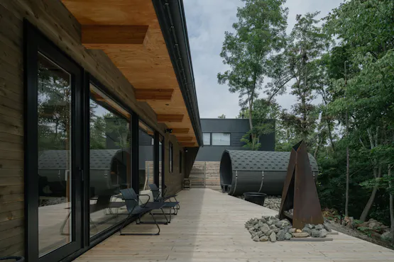 〇ดาดฟ้าไม้กลางป่า・・・ดาดฟ้าไม้ที่เชื่อมต่อจากหน้าต่างห้องนั่งเล่น เพลิดเพลินกับการดื่มกาแฟพร้อมสัมผัสสายลม หรือชมดาวอย่างสบายใจในแบบของคุณ 〇เตาไฟที่พร้อมใช้งาน・・・บนดาดฟ้ามีเตาไฟและฟืนให้บริการ เพลิดเพลินกับการชมเปลวไฟและใช้เวลาผ่อนคลายตามอัธยาศัย 〇ซาวน่าส่วนตัวสไตล์นอร์ดิก・・・ซาวน่าถังไม้ส่วนตัวสำหรับครอบครัวหรือคู่รัก สนุกกับการอาบน้ำแบบฟินแลนด์หรือแช่น้ำเย็นในอ่างโกเอะมง ค่าบริการรวมอยู่ในค่าที่พักแล้ว 〇ห้องใต้หลังคาสไตล์ฐานลับ・・・ห้องใต้หลังคาที่มีเสื่อทาทามิให้ความรู้สึกสงบ พร้อมชุดเครื่องนอนสำหรับพักผ่อน 〇ห้องนอนที่เต็มไปด้วยบรรยากาศฮอกไกโด・・・มีห้องนอน 1 ห้องบนชั้น 1 และชั้น 2 นอกจากความสะดวกสบายของพื้นที่ ยังมีที่นอนไร้แรงกดทับเพื่อความหลับสนิท 〇ห้องรับแขกเชื่อมต่อธรรมชาติ・・・พื้นของระเบียงไม้และพื้นภายในบ้านถูกปรับให้อยู่ระดับเดียวกัน โซฟาถูกจัดวางเพื่อชมวิวป่า เป็นสถานที่เหมาะสำหรับเพลิดเพลินกับธรรมชาติ 〇บริการรวมทุกอย่าง (All-Inclusive)・・・ไวน์จากร้านดัง เบียร์ท้องถิ่น น้ำแร่ และกาแฟคั่วสดใหม่ พร้อมให้บริการแก่คุณ 〇สิ่งของคุณภาพสูง・・・ตั้งแต่เครื่องใช้บนโต๊ะอาหารจนถึงเครื่องนอน คัดเลือกโดยเน้นงานฝีมือจากญี่ปุ่นและฮอกไกโดเป็นหลัก 〇รองรับการเข้าพักระยะยาว・・・ครัวออกแบบมาเพื่อทำอาหารได้ง่าย และมีสิ่งจำเป็นครบครัน เหมาะสำหรับผู้เข้าพักระยะยาว รวมถึงสามารถใช้เป็นสถานที่ทำงานได้
