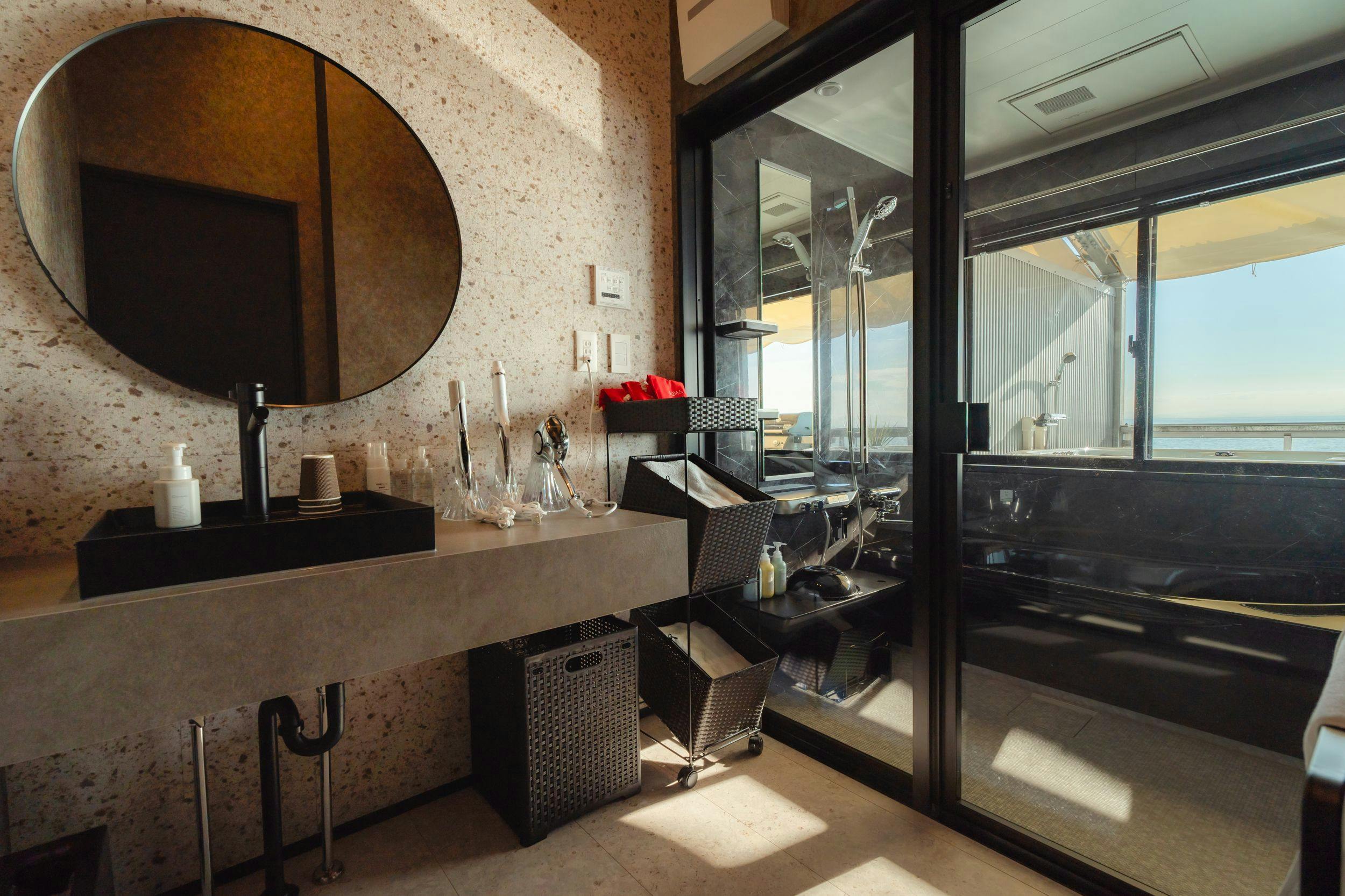 ในห้องพัก คุณสามารถสัมผัสประสบการณ์การบดเมล็ดกาแฟด้วยมือและชงกาแฟดริปได้ มีเมล็ดกาแฟเบลนด์พิเศษ 3 ชนิดที่ได้รับแรงบันดาลใจจากธรรมชาติ ได้แก่ "แคมป์ไฟ" "ภูเขาและทุ่งหญ้า" และ "ชายทะเล" ใช้เมล็ดกาแฟคั่วเองจาก "mir-cafe" ที่มีสำนักงานใหญ่ในโอกาซากิ เพลิดเพลินกับวิวทะเลกว้างใหญ่และเริ่มต้นการเดินทางผ่อนคลายของคุณพร้อมกาแฟ