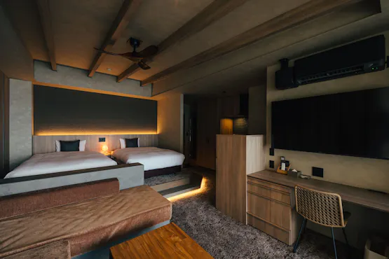 โรงแรมรีสอร์ทสำหรับการเข้าพักที่เปิดใหม่ในฤดูร้อนปี 2024 โรงแรมรีสอร์ทที่ตั้งอยู่ริมทะเลอามาคุสะและมองเห็นภูเขาอุนเซ็นฟุเก็นดาเกะ มีคอทเทจแบบแยกส่วน 8 หลัง และห้องพักแบบอพาร์ตเมนต์ใหม่ 10 ห้องเปิดให้บริการ ท่านสามารถเพลิดเพลินกับพระอาทิตย์ตกที่ลับขอบฟ้าจากระเบียงส่วนตัวที่จัดเตรียมไว้ ระหว่างการเข้าพัก ท่านสามารถใช้บริการซาวน่า 2 ประเภท และสระว่ายน้ำอินฟินิตี้ที่เชื่อมต่อกับทะเลอามาคุสะได้ แนะนำสำหรับการเข้าพักระยะกลางถึงระยะยาว เช่น การทำงานพร้อมการพักผ่อน (Workation Stay) หรือการพักผ่อนเพื่อฟื้นฟูจิตใจและร่างกาย (Retreat Stay) โปรดใช้เวลาอย่างผ่อนคลายท่ามกลางธรรมชาติของอามาคุสะ