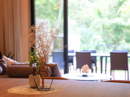 พักผ่อนส่วนตัวในธรรมชาติอันอุดมสมบูรณ์ของฮาโกเน่และน้ำพุร้อนธรรมชาติ คอนโดมิเนียมเมซองแน็ตทุกหลังเป็นแบบ 2LDK พร้อมห้องนั่งเล่นเพดานสูงและหน้าต่างบานใหญ่ที่ให้ความรู้สึกโปร่งโล่งจากอ่างน้ำพุร้อน สัมผัสประสบการณ์การฟื้นฟูทั้งกายและใจด้วยบ่อน้ำพุร้อนวิวพร้อมเรนชาวเวอร์ และระเบียงแช่เท้าชมวิวป่า