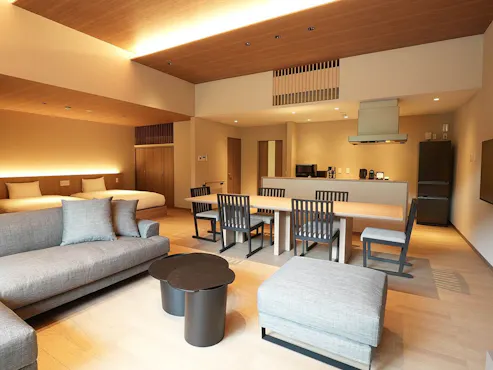 วิลล่าส่วนตัวที่กลมกลืนกับธรรมชาติอันอุดมสมบูรณ์ของหุบเขาคินุกาวะ ห้องพักที่เปิดโล่งและกลมกลืนกับธรรมชาติมีบริการน้ำพุร้อน เตียงหินร้อน และซาวน่า มีห้องพักที่อนุญาตให้นำสัตว์เลี้ยงเข้าพักได้ ห้องเล่นสำหรับเด็กพร้อมของเล่น และห้องพักพร้อมซาวน่า เพื่อสร้างประสบการณ์การเข้าพักที่พิเศษ