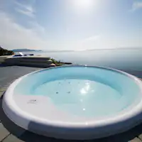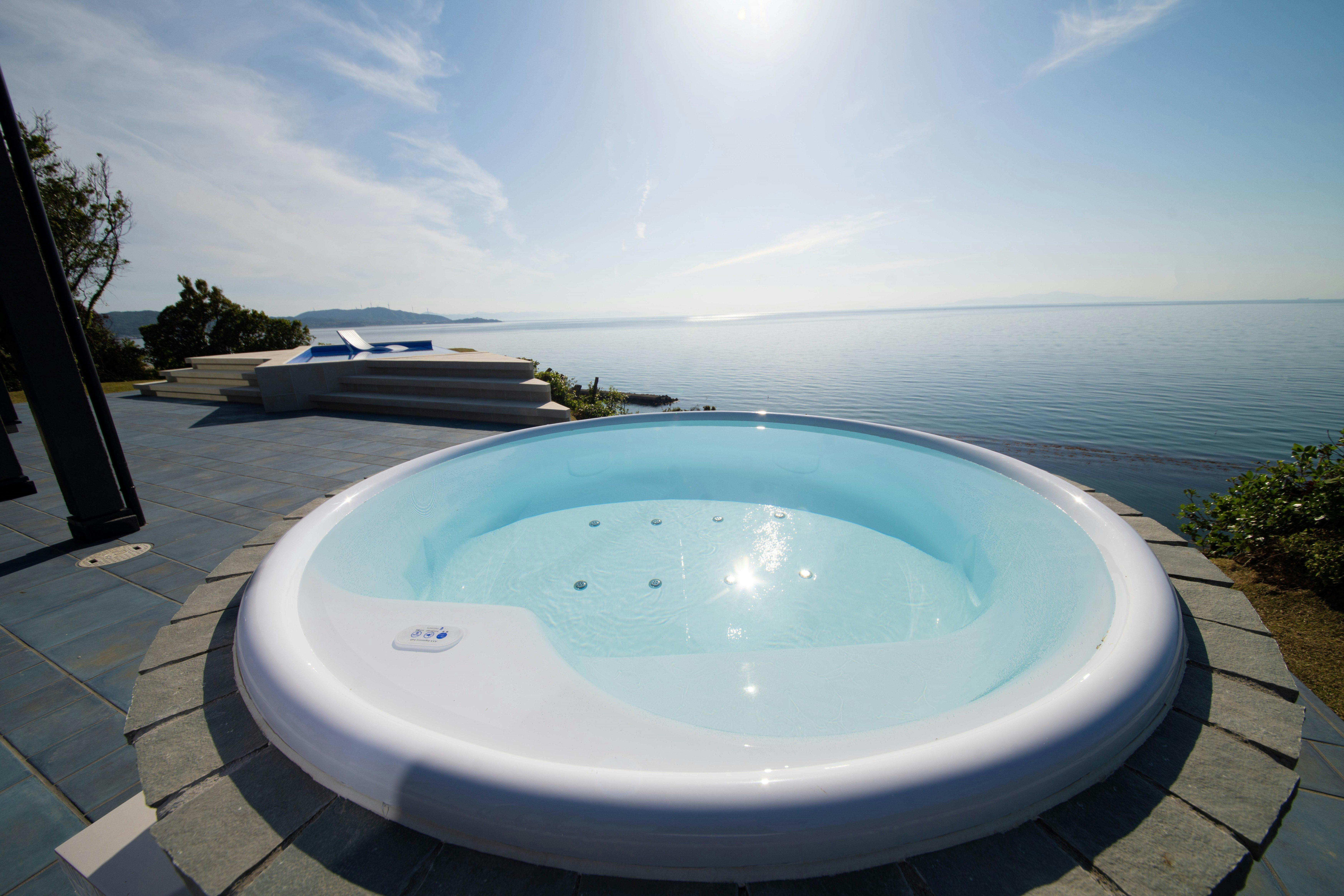 วิวจากอ่างจากุซซี่กลางแจ้งคือท้องทะเลกว้างสุดสายตาที่ส่องประกายใต้แสงอาทิตย์ยามเย็น คุณสามารถชมทัศนียภาพของทะเลเซโตะในได้แบบพาโนรามา พร้อมสัมผัสสายลม และยังเพลิดเพลินกับการชมท้องฟ้าเต็มไปด้วยดวงดาวได้อีกด้วย