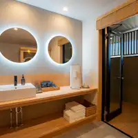 ห้องพักทุกห้องมีซาวน่าส่วนตัวที่อุณหภูมิต่ำ (สูงสุด 65 องศา) และดาดฟ้าอาบน้ำกลางแจ้ง คุณสามารถเพลิดเพลินได้ทุกเวลาระหว่างการเข้าพักโดยไม่ต้องกังวลสายตาของผู้อื่น สัมผัสประสบการณ์หรูหราในพื้นที่ส่วนตัวที่เงียบสงบ ※ ไม่สามารถทำ Löyly ได้