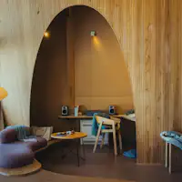 หนึ่งในรูปแบบสถาปัตยกรรมอันเป็นเอกลักษณ์ของ SANU 2nd Home คือ SANU CABIN BEE อาคารเดี่ยวที่โดดเด่นด้วยรูปทรงที่ได้แรงบันดาลใจจากรังผึ้ง และหน้าต่างบานใหญ่ที่กรอบภาพทิวทัศน์ธรรมชาติ ใช้ไม้ภายในประเทศ 100% และใช้ฐานรากแบบยกพื้นเพื่อคำนึงถึงสภาพแวดล้อมของดิน พื้นที่โปร่งโล่งด้วยเพดานสูง 4 เมตร พร้อมหน้าต่างบานใหญ่ที่รับวิวอันยิ่งใหญ่ด้านนอก พื้นที่ทำงานและพื้นที่เตียงถูกแบ่งอย่างนุ่มนวลด้วยไม้โค้ง ช่วยให้ลงตัวทั้งการใช้ชีวิต การทำงาน และการพักผ่อน ขอเชิญลองใช้ระเบียงกว้างขวาง ที่คุณสามารถเพลิดเพลินกับอาหารเช้าพร้อมชมวิวสวยงามได้อย่างเต็มที่