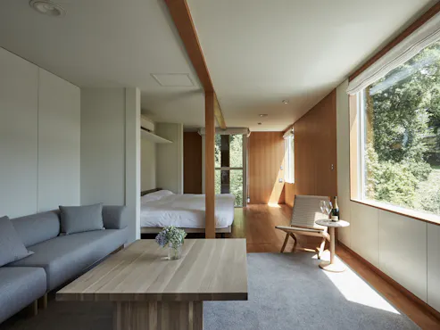 เพลิดเพลินกับทิวทัศน์ของฤดูกาลที่สะท้อนผ่านหน้าต่าง พร้อมใช้สิ่งอำนวยความสะดวก เช่น ซาวน่าส่วนตัวแบบบาร์เรลและการทำสมาธิในห้องสไตล์ญี่ปุ่นเพื่อสัมผัสความสงบลึกซึ้ง เพลิดเพลินกับช่วงเวลาที่ทำให้จิตใจและร่างกายบริสุทธิ์
