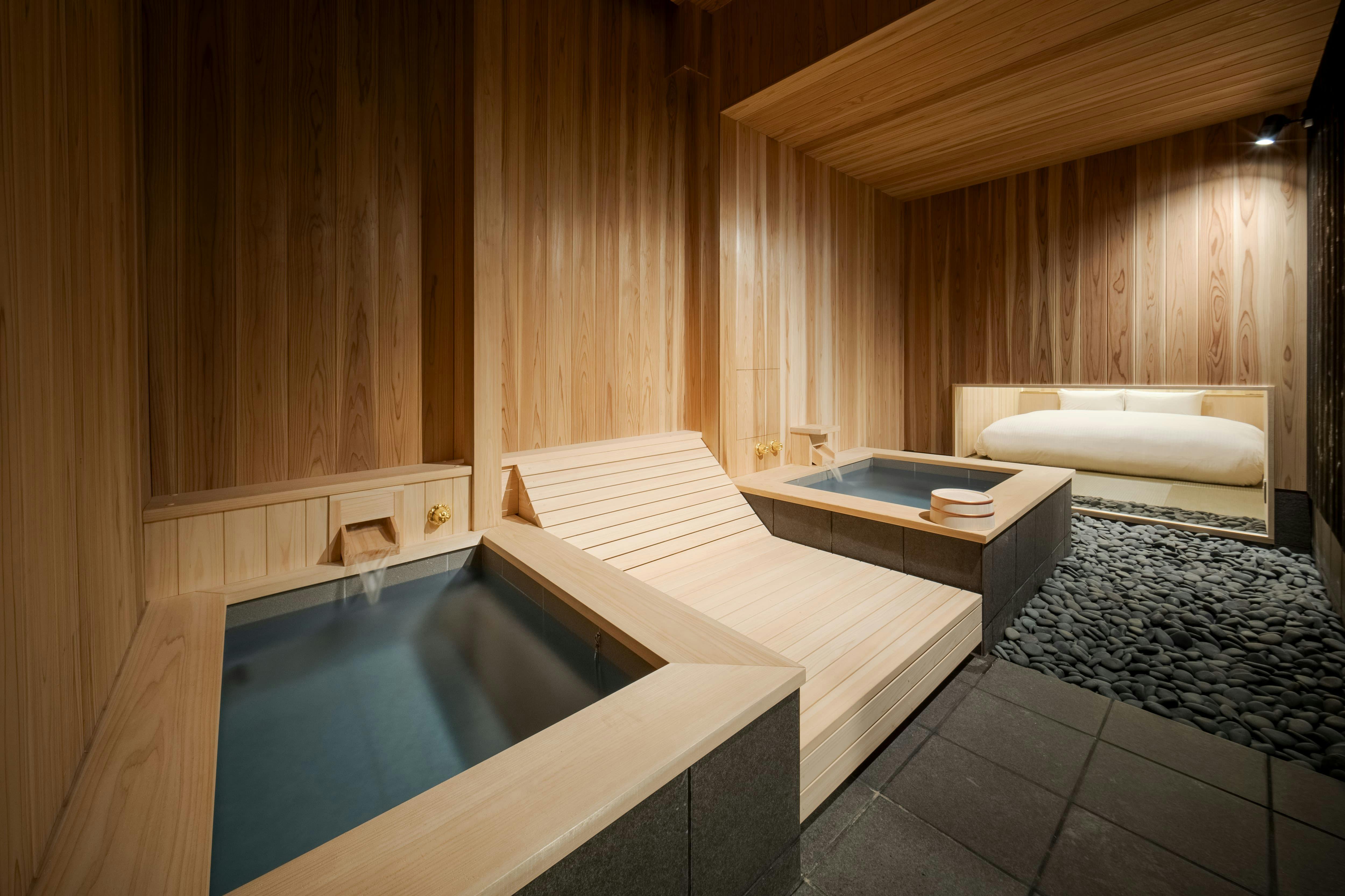 "MACHIYA de SAUNA" ตั้งอยู่ในทำเลที่ยอดเยี่ยม ห่างจากสถานีเกียวโตเพียง 5 นาทีโดยการเดิน เป็นที่พักแบบเช่าทั้งหลังที่มาพร้อมกับซาวน่าและอ่างอาบน้ำกลางแจ้ง สามารถรองรับผู้เข้าพักได้สูงสุด 5 ท่าน โดยมีเตียงคิงไซส์ 1 เตียง และฟูกนอน 3 ชุดให้บริการ จุดเด่นที่สุดของที่พักนี้คือสิ่งอำนวยความสะดวกสำหรับการผ่อนคลายที่ครบครัน นอกจากซาวน่าส่วนตัวที่สามารถใช้งานได้ตลอด 24 ชั่วโมงแล้ว ยังมีอ่างอาบน้ำกลางแจ้งและอ่างน้ำเย็นที่ช่วยให้คุณเพลิดเพลินกับช่วงเวลาแห่งการผ่อนคลายได้อย่างเต็มที่โดยไม่มีใครรบกวน นอกจากนี้ยังมีครัวและเครื่องซักผ้าพร้อมเครื่องอบผ้า ทำให้เหมาะสำหรับการเข้าพักระยะยาว หลังจากสัมผัสประวัติศาสตร์และวัฒนธรรมของเกียวโตแล้ว คุณสามารถฟื้นฟูร่างกายและจิตใจในพื้นที่พิเศษนี้ได้ ขอเชิญสัมผัสช่วงเวลาแห่งการผ่อนคลายที่ไม่เหมือนใครที่นี่