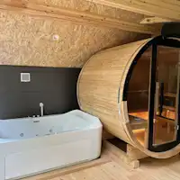 คอทเทจที่ได้แรงบันดาลใจจากอัญมณีประจำเดือนเกิด ทุกห้องมีซาวน่าถังไม้ (Barrel Sauna) และจากุซซี่ พื้นที่เอาต์ดอร์ลิฟวิ่งแบบใช้งานได้ทุกสภาพอากาศ พร้อมเตาบาร์บีคิว มินิครัว โฮมเธียเตอร์ และเตียง Simmons ให้คุณเพลิดเพลินกับพื้นที่ส่วนตัวสุดหรู มีบริการ BBQ สุดพรีเมียมด้วยวัตถุดิบจากจังหวัดยามานาชิ และมีสาเกท้องถิ่นให้เลือกหลากหลาย เหมาะสำหรับครอบครัว คู่รัก ทริปสาวๆ วันครบรอบ และการท่องเที่ยวพร้อมสุนัขแสนรัก ผ่อนคลายไปกับวิวป่าที่ทอดยาวบนระเบียง แล้วใช้เวลาพิเศษที่ไม่เหมือนวันไหนๆ มีบริการรับส่งฟรี (ต้องทำการจองล่วงหน้า) ออกจากสถานีคาวากุจิโกะ 14:30 / ออกจากสิ่งอำนวยความสะดวก 10:00 ให้บริการวันละ 1 รอบ