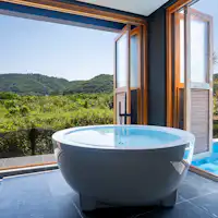 【PREMIER SUITE】พื้นที่หรูหราด้วยการผสมผสานระหว่างไม้และคอนกรีต พร้อมสิ่งอำนวยความสะดวกครบครัน เช่น สระว่ายน้ำ ซาวน่า และบาร์บีคิว มีเตียงคู่ 6 เตียงสำหรับการเข้าพักที่หรูหรา 【COAST/HIGHLAND SUITE】พื้นที่ที่ตกแต่งด้วยโทนสีขาวอย่างประณีต ออกแบบให้ล้อมรอบสระว่ายน้ำเพื่อสัมผัสกับธรรมชาติในวิลล่าส่วนตัวที่เงียบสงบ มีเตียงคู่ 4 เตียงและห้องเสื่อญี่ปุ่น รองรับผู้เข้าพักได้สูงสุด 10 ท่าน