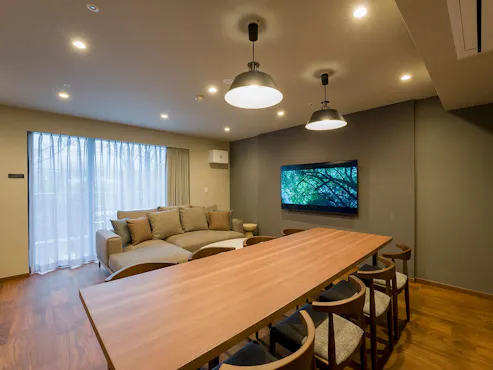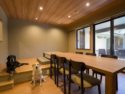 เรามีห้องพักที่สามารถเข้าพักพร้อมกับน้องหมาได้ บริเวณลานกลางแจ้งที่เชื่อมต่อจากห้องนั่งเล่นมีสวนส่วนตัวปูด้วยหญ้าเทียม หญ้าเทียมทำความสะอาดง่าย ทำให้น้องหมาและครอบครัวสามารถพักผ่อนได้อย่างสบายใจ เพลิดเพลินกับการเดินทางในฮาโกเนะพร้อมกับสัตว์เลี้ยงแสนรักของคุณ