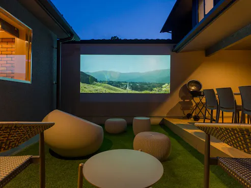 เทอเรสแบบ B มีการติดตั้งโปรเจคเตอร์กลางแจ้งและซาวน่ากลางแจ้งที่นำมาใช้ครั้งแรกใน Rakuten STAY เพลิดเพลินกับการชมภาพยนตร์ที่คุณชื่นชอบ พร้อมสัมผัสสายลมแห่งฮาโกเนะ และพักผ่อนด้วยการอาบอากาศบริสุทธิ์ บนระเบียงไม้ยังสามารถจัดบาร์บีคิวพร้อมชมท้องฟ้าที่เต็มไปด้วยดวงดาวได้ พื้นที่อยู่อาศัยกลางแจ้งที่สะดวกสบาย ให้คุณได้ใช้เวลาร่วมกับครอบครัวหรือเพื่อนสนิทในพื้นที่เดียวกัน พร้อมสนุกสนานตามใจปรารถนา