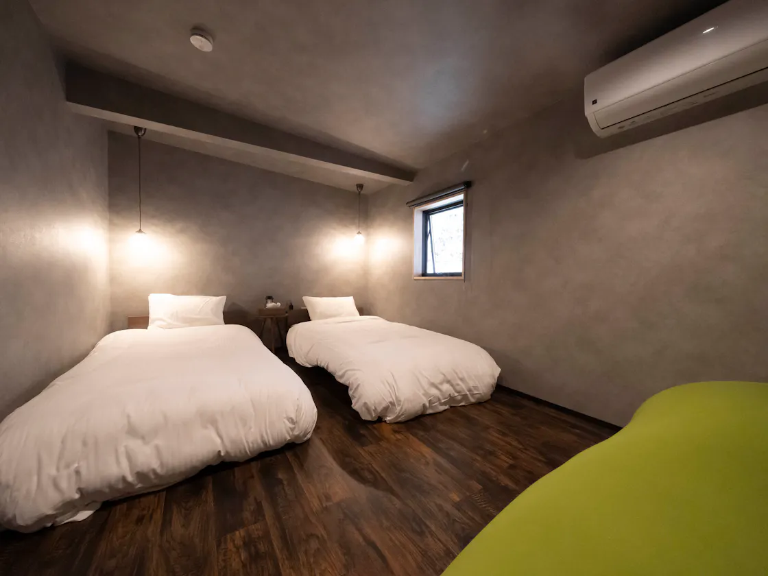 วิลล่าพร้อมซาวน่าส่วนตัวที่ให้บริการแบบส่วนตัวสำหรับ 1 กลุ่มต่อวัน ตั้งอยู่ท่ามกลางธรรมชาติของชิงารากิ สามารถเข้าพักได้สูงสุด 6 ท่าน การตกแต่งภายในและเครื่องใช้บนโต๊ะอาหารใช้ผลงานของศิลปินเครื่องปั้นดินเผาชิงารากิ สัมผัสถึงวัฒนธรรมและความงามในท้องถิ่น ระหว่างการเข้าพัก ท่านสามารถใช้บริการซาวน่าส่วนตัว 2 แห่งในพื้นที่ ("ซาวน่าดิน" มีค่าใช้จ่ายเพิ่มเติม และ "ซาวน่าชา") ได้อย่างอิสระ เพลิดเพลินกับช่วงเวลาสุดพิเศษที่ร่างกายและจิตใจได้รับการฟื้นฟูในป่าอันเงียบสงบ *สามารถเพิ่มชุดฟูกได้อีก 2 ชุด
