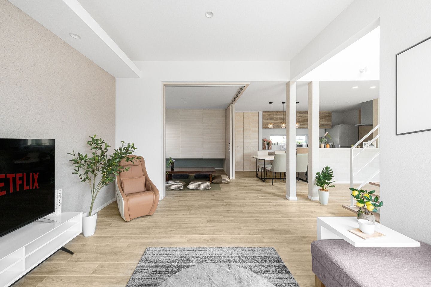 โรงแรมหรูแบบเหมาทั้งหลังที่หาได้ยากในอาซาฮิคาวะ พร้อมความโปร่งโล่งอย่างเหนือระดับจากห้องนั่งเล่นเพดานสูงแบบโถงเปิด