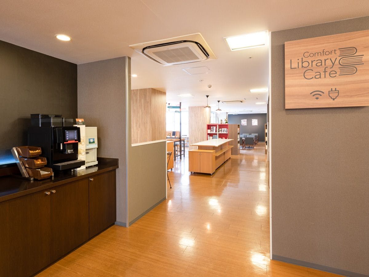 <บริการของ Comfort Library Café> 〇เครื่องดื่มฟรี เพลิดเพลินกับเครื่องดื่มที่มีให้เลือก เช่น กาแฟและชา 〇หนังสือ มีหนังสือและหนังสือภาพที่คัดสรรโดยผู้เชี่ยวชาญมากกว่า 100 เล่ม 〇Wi-Fi ฟรี ให้บริการ Wi-Fi ที่ปลอดภัยและสะดวกสบายฟรี 〇ชาร์จไฟฟรี มีปลั๊ก USB ให้บริการ สามารถใช้งานคอมพิวเตอร์และชาร์จอุปกรณ์ได้พร้อมกัน 〇แท็บเล็ต มี iPad (ขนาด 9.7 นิ้ว) ให้บริการจำนวน 2 เครื่อง